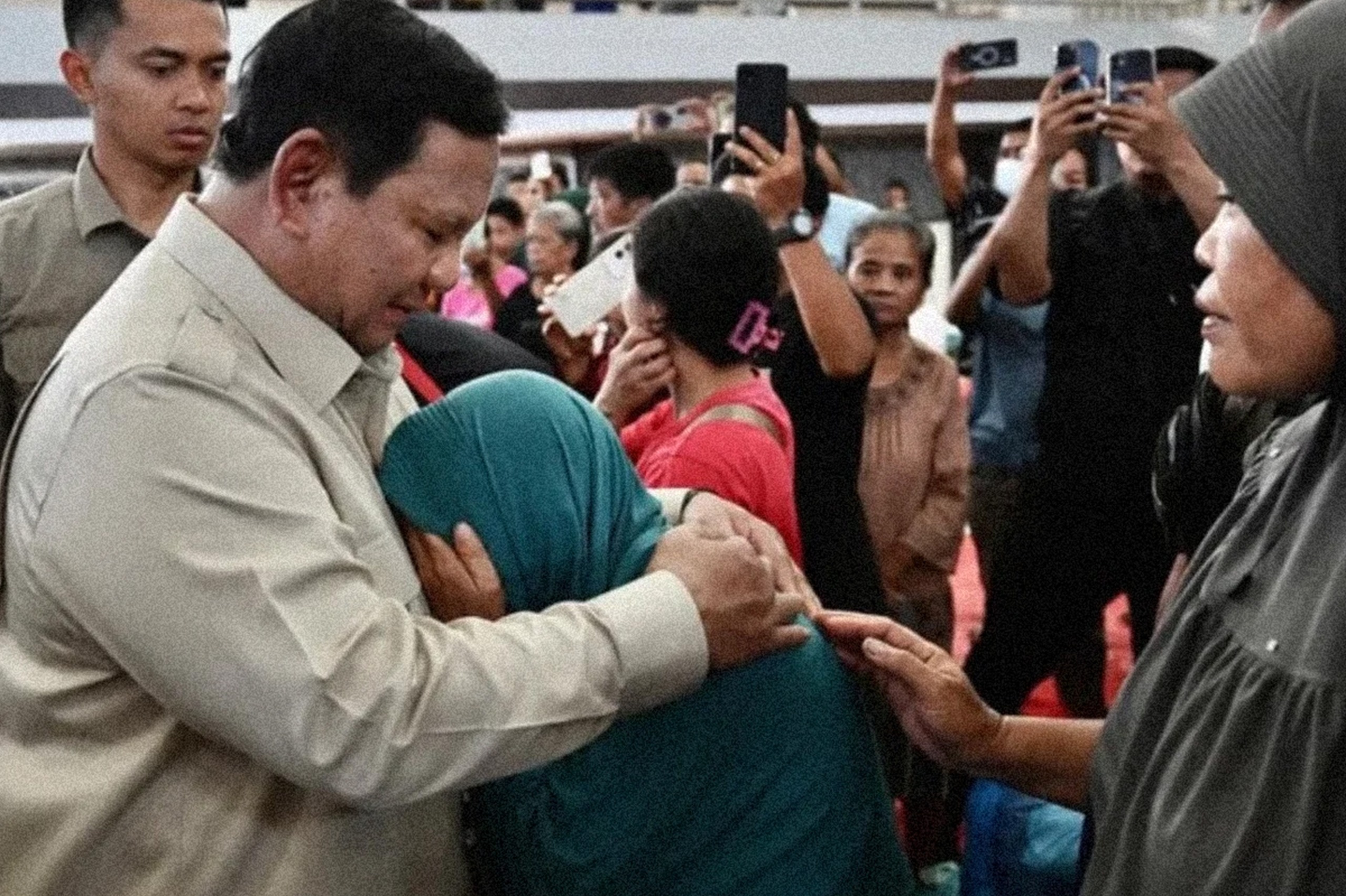 Warga berebut bersalaman, berfoto, bahkan memeluk Presiden sambil menangis, sementara Prabowo berulang kali menenangkan mereka dan memberi dukungan moral.