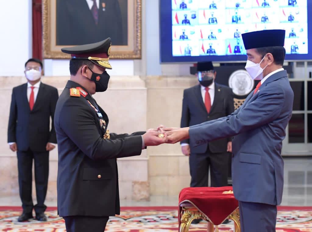 JAKARTA – Presiden Joko Widodo pada Rabu, 27 Januari 2021, melantik dan mengambil sumpah jabatan Komisaris Jenderal Polisi Listyo Sigit Prabowo sebagai Kepala Kepolisian Negara Republik Indonesia (Kapolri). Acara pelantikan berlangsung di Istana Negara, Jakarta, dengan menerapkan protokol kesehatan.