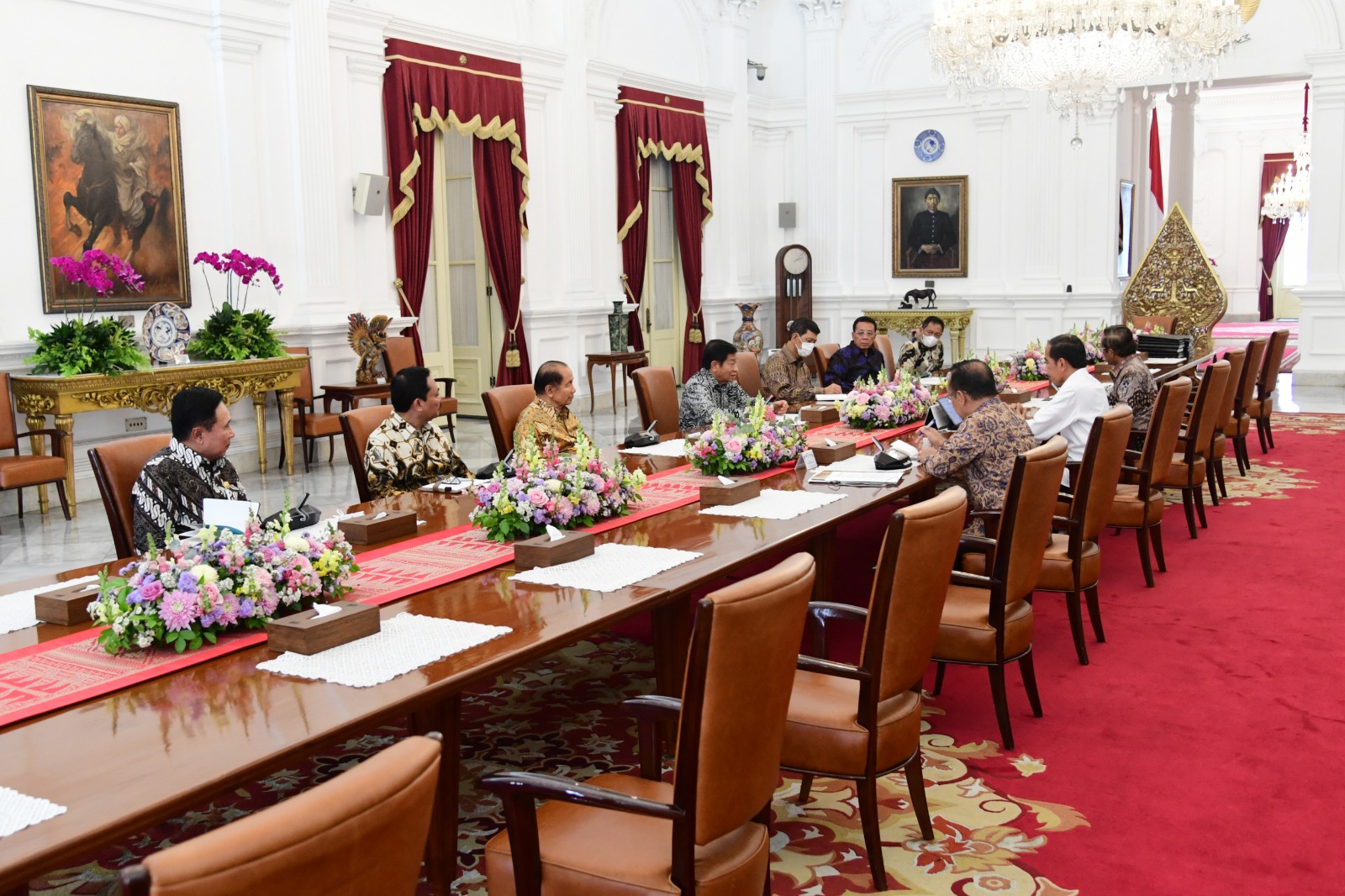 Turut mendampingi Presiden dalam pertemuan tersebut yakni Menteri Koordinator Bidang Politik, Hukum, dan Keamanan Mahfud Md. serta Menteri Sekretaris Negara Pratikno.