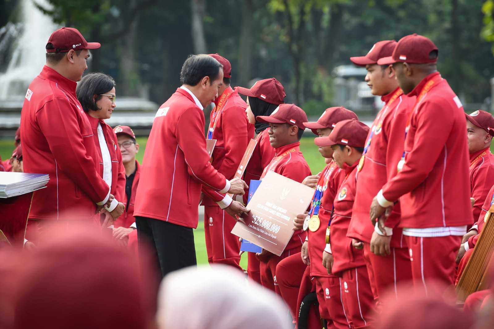 Pada kesempatan tersebut, Presiden Jokowi menyerahkan bonus apresiasi secara simbolis kepada perwakilan atlet peraih medali, yaitu: