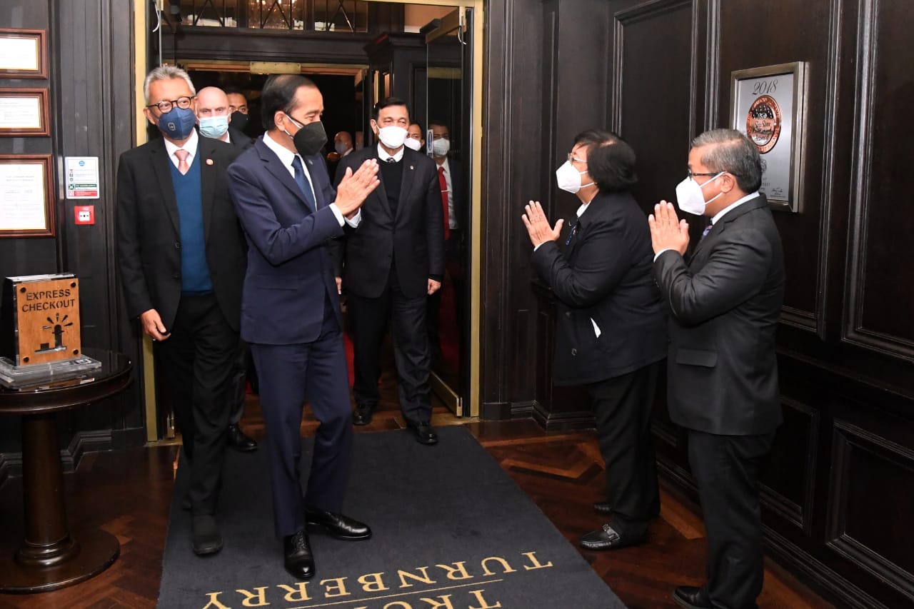Jokowi langsung menuju rangkaian kendaraan yang telah disiapkan untuk kemudian menuju hotel tempatnya bermalam selama berada di Glasgow. Setibanya di hotel, Presiden Jokowi disambut oleh Menteri Lingkungan Hidup dan Kehutanan Siti Nurbaya, para pejabat KBRI London dan General Manager Hotel tersebut.
