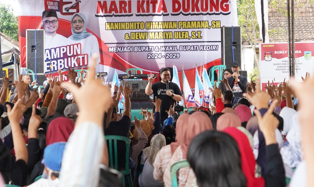 Ratusan warga yang mengikuti kampanye di Lapangan Sumber Bahagia siang itu pun menyuarakan dukungan supaya Mas Dhito, Calon Bupati nomor urut 02 itu kembali memimpin Kabupaten Kediri.