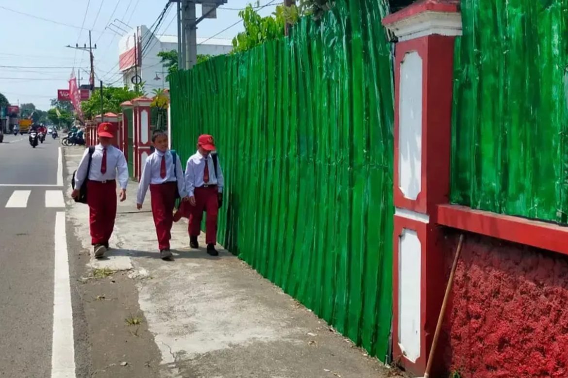 Area sekolah yang kini dipagari seng membuat suasana belajar tidak lagi seperti sebelumnya, meski proyek tetap berjalan di tengah penolakan dari guru, wali murid, hingga sejumlah pihak legislatif.