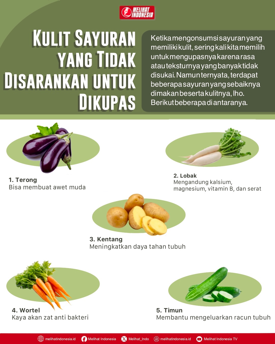 MELIHAT INDONESIA – Ketika mengonsumsi sayuran yang memiliki kulit, sering kali kita memilih untuk mengupasnya karena rasa atau teksturnya yang banyak tidak disukai.