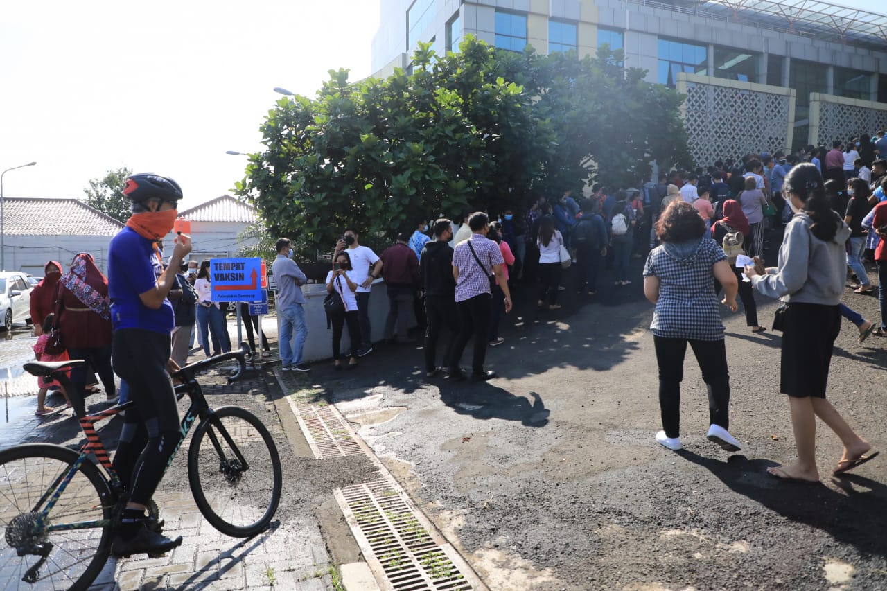 SEMARANG – Kesadaran masyarakat untuk tidak berkerumun dan disiplin protokol kesehatan masih menjadi tantangan di tengah pandemi Covid-19. Bahkan Gubernur Jawa Tengah Ganjar Pranowo harus turun tangan untuk menertibkan warga yang berkerumun itu, salah satunya di areal gedung UTC Semarang yang juga digunakan sebagai sentra vaksinasi di Kota Semarang, Selasa (22/6/2021).
