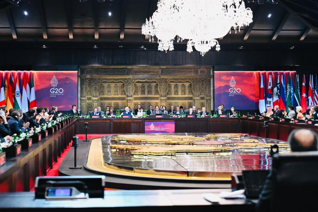 Presiden Joko Widodo mendorong transformasi digital untuk mempercepat pemulihan global dalam sesi ketiga Konferensi Tingkat Tinggi (KTT) G20 yang digelar di Hotel Apurva Kempinski, Kabupaten Badung, Provinsi Bali, Rabu, 16 November 2022. Menurutnya, ekonomi digital adalah kunci masa depan ekonomi sebagai pilar ketahanan di masa pandemi, menyumbang 15,5 persen PDB global, dan membuka peluang masyarakat kecil menjadi bagian dari rantai pasok global.