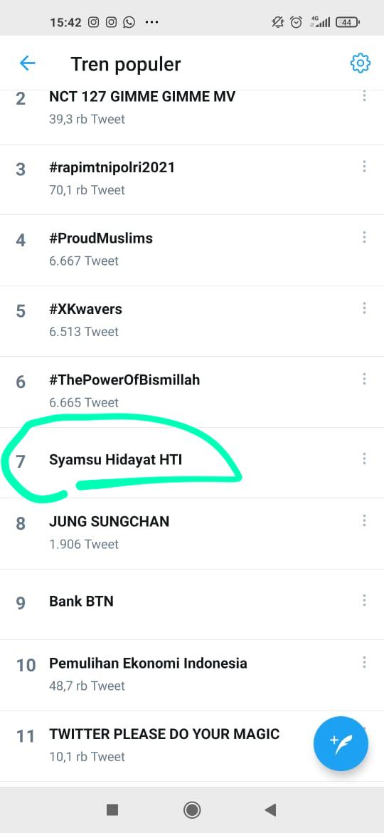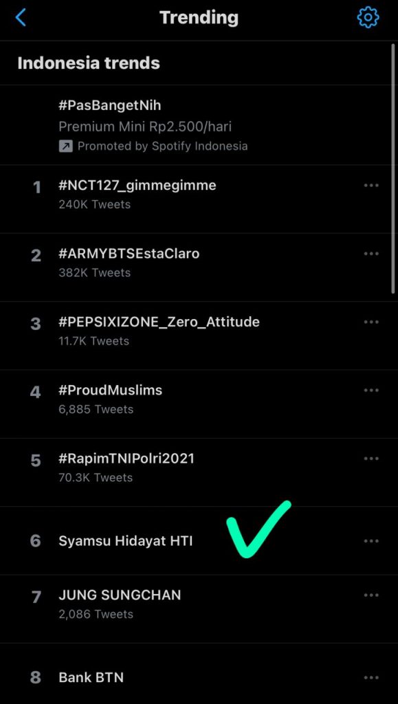 Syamsu Hidayat HTI menempati Trending di Twitter