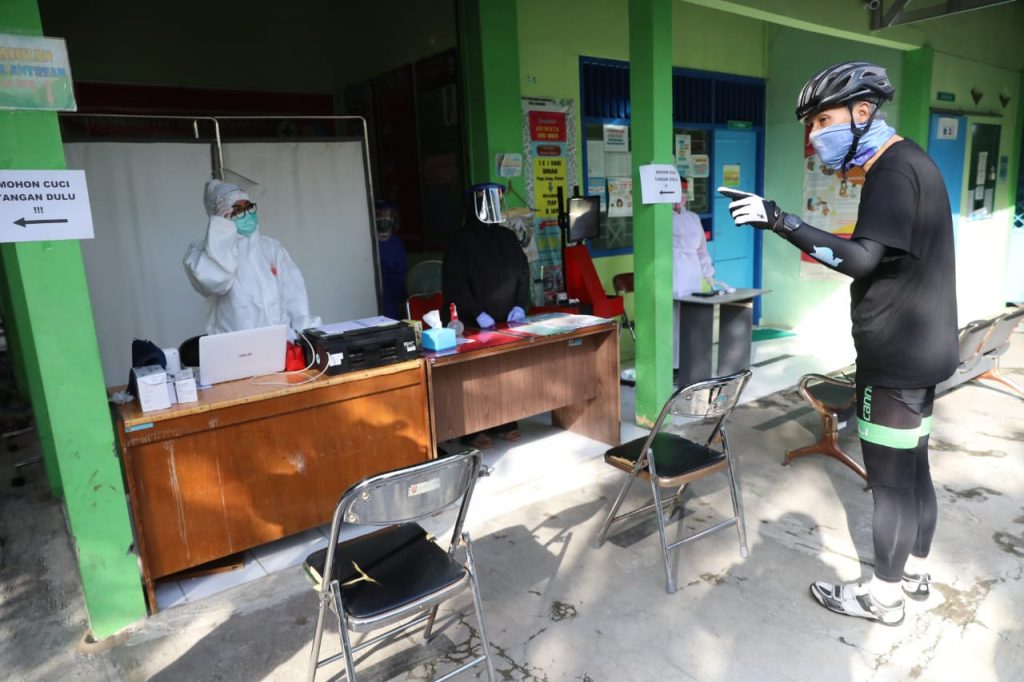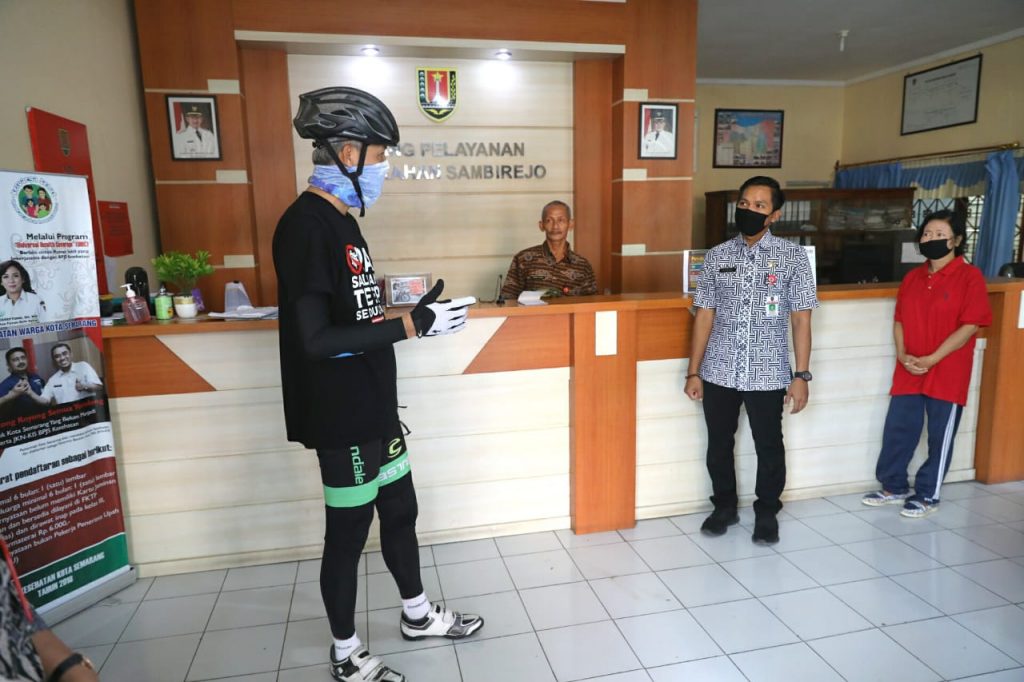 Sambil gowes pagi, Ganjar mampir ke Puskesmas itu untuk melihat pelayanan kesehatan. Selain memastikan bahwa protokol kesehatan dijalankan baik, ia juga menanyakan perihal imunisasi.