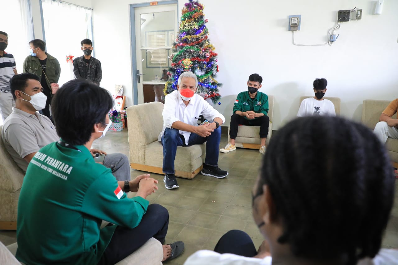 Di asrama tersebut, Ganjar bertemu mahasiswa dari berbagai etnis. Ada dari Nias, Manado, Aceh, Kalimantan hingga Papua. Ganjar pun bercerita pertemuannya dengan teman-teman mereka di Semarang, Sabtu (25/12) kemarin.