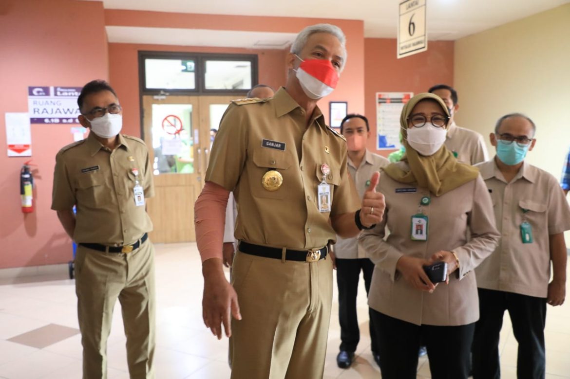 Ganjar bahkan sudah memakai baju dinas khaki dari kamar perawatan 619 Gedung Garuda. Ditemani Dirut RSUP Dr Kariadi Semarang, Ganjar menengok penanganan covid dan kesiapan menghadapi lonjakan kasus varian Omicron di rumah sakit tersebut.
