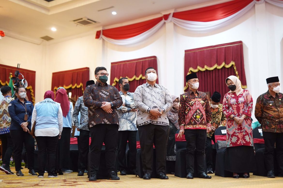 Kediri – Bupati Kediri Hanindhito Himawan Pramana mengikuti Rapat Koordinasi Monitoring dan Evaluasi Program Pemberantasan Korupsi Wilayah Jawa Timur bersama Komisi Pemberantasan Korupsi (KPK) di Gedung Grahadi Surabaya, Kamis (15/9/2022).