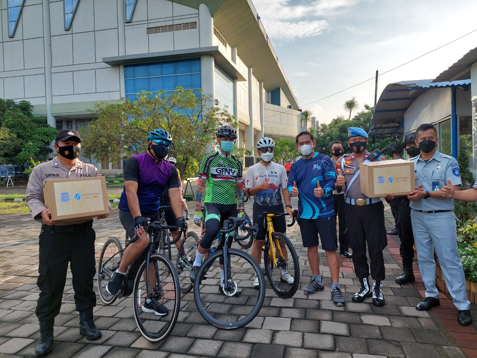 “Kedatangan tamu dari (Dirgakkum) Korlantas Polri Brigjen Pol Aan Suhanan dan Dirut Jasa Raharja Rivan A Purwantono. Kegiatan sepedaan pagi hari ini nengok posko Nataru) dan beliau-beliau memberikan bingkisan kepada mereka yang jaga,”