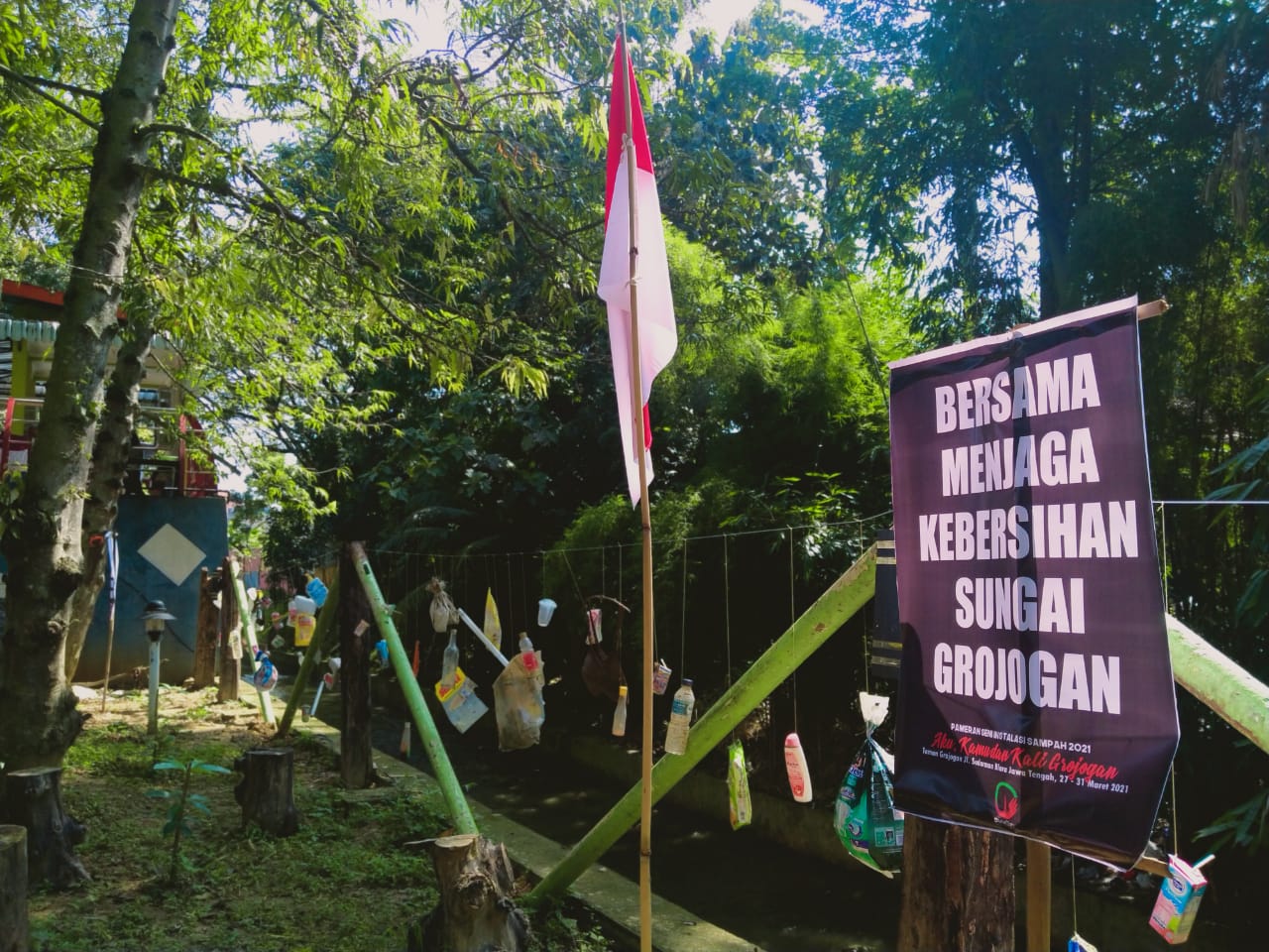 BLORA – Pembukaan pameran seni instalasi sampah di Taman Grojogan Jl. Sudarman Blora Jawa Tengah lewat pameran bertajuk “Aku, Kau dan Kali Grojogan” rencana menyuguhkan tetarikal berjudul “Teror Weden Sampah Kali Grojogan”, Minggu (28/03) siang.