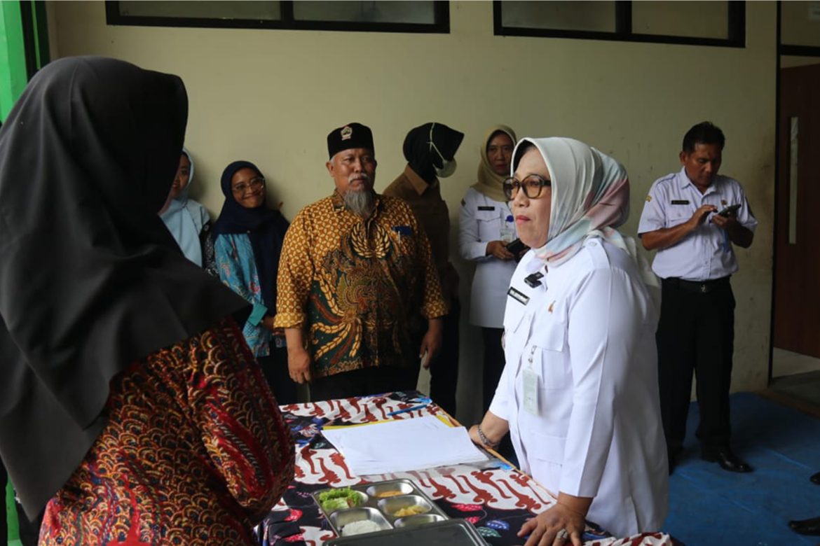 Dalam kesempatan itu, Wabup meninjau langsung proses pendistribusian makanan kepada siswa, memeriksa variasi serta kelengkapan menu, hingga menanyakan mekanisme pengecekan makanan oleh guru.