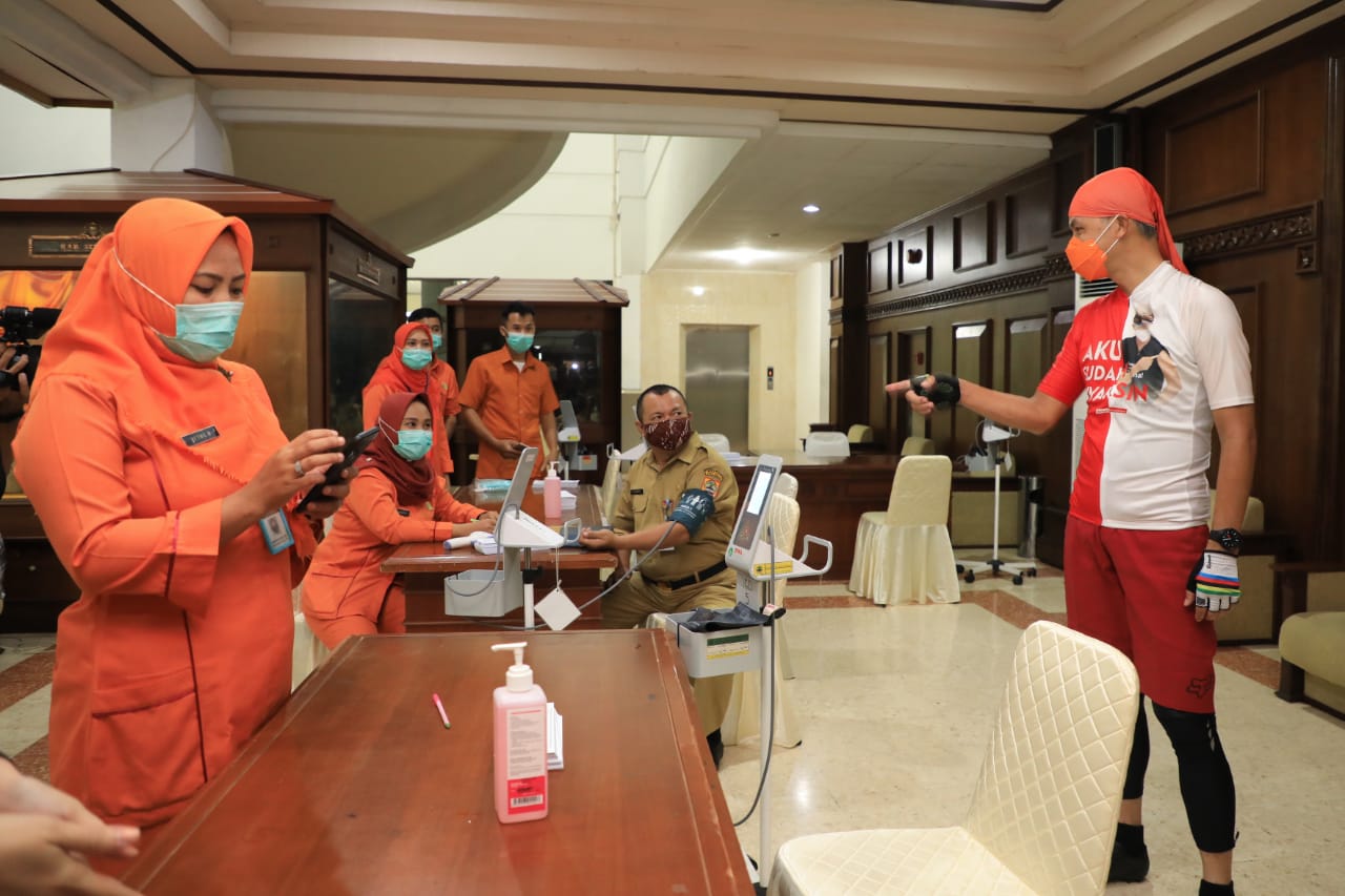 Hal itu disampaikannya saat meninjau proses vaksinasi gelombang II, di Gedung Gradhika Bhakti Praja, Senin (22/2). Ganjar menyapa sejumlah ASN, TNI, Polri, Pejabat BUMD, Wartawan hingga Atlet.